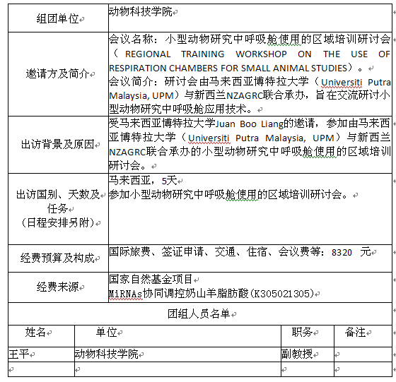 现将性吧 王平副教授因公临时出国情况予以公示,公示材料如下: