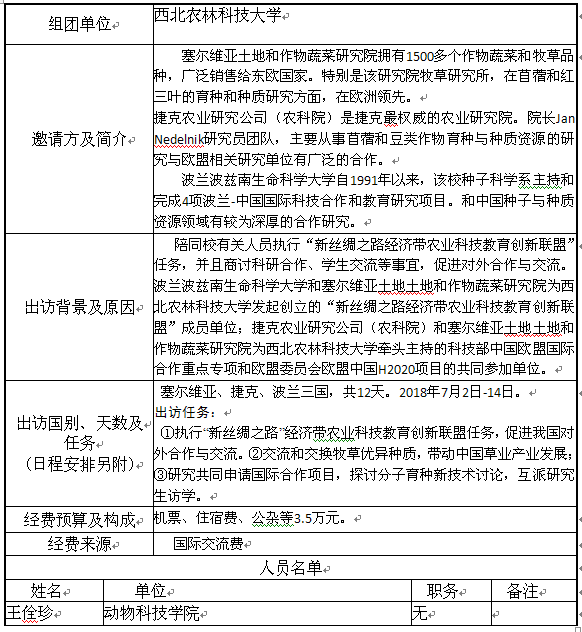 现将性吧 王佺珍教授因公出国予以公示,出访内容如下: