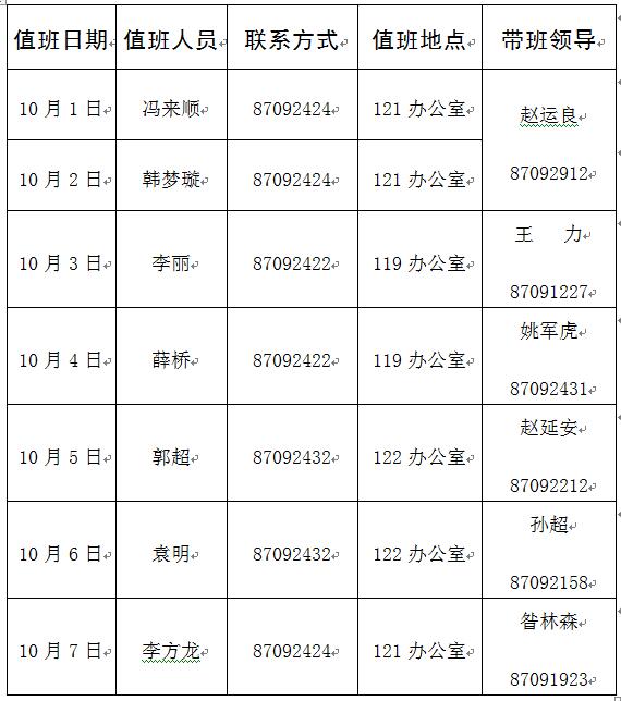 注:1. 值班时间:上午8:30—11:30,下午3:00—6:00