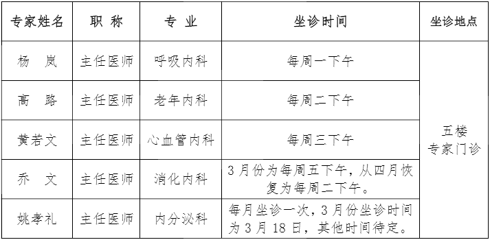 为了满足大家的就医需求,从3 月 4 日起,交大一附院专家来院坐时间诊恢复正常。坐诊时间安排如下:
