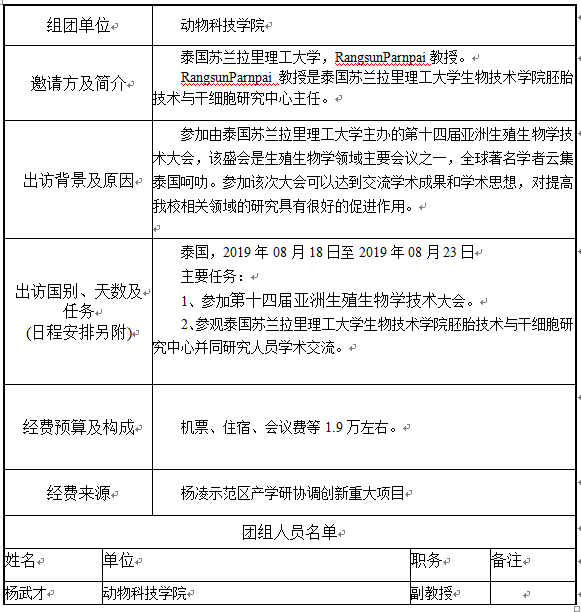 现将杨武才副教授因公出国予以公示,公示期自2019年7月4日至2019年7月8日。如有举报意见,请以书面或口头形式向性吧 党政综合室反映,电话87092937。(公示内容见下表)