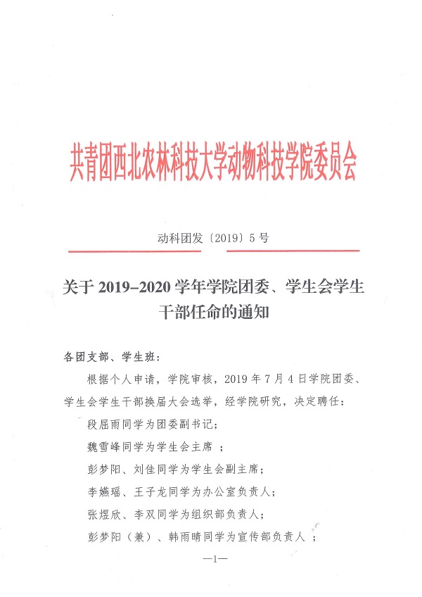 » 关于2019-2020学年性吧 团委、学生会学生干部任命的通知
