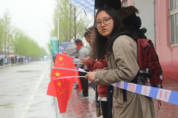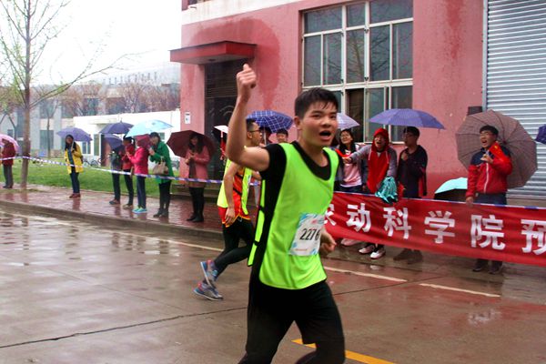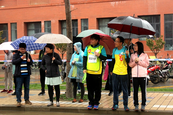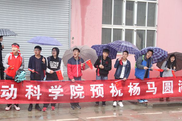 红旗飘飘 雨打不湿动科学子呐喊助威的热情