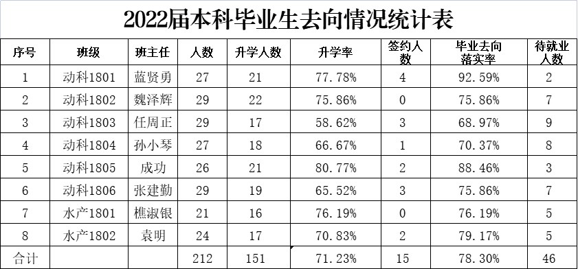 性吧 2022届毕业生413人(本科生212人、硕士研究生162人、博士研究生39人)。截至5月17日,性吧 毕业生总体去向落实率55.69%,本科生去向落实率为78.30%;研究生去向落实率为31.84%。