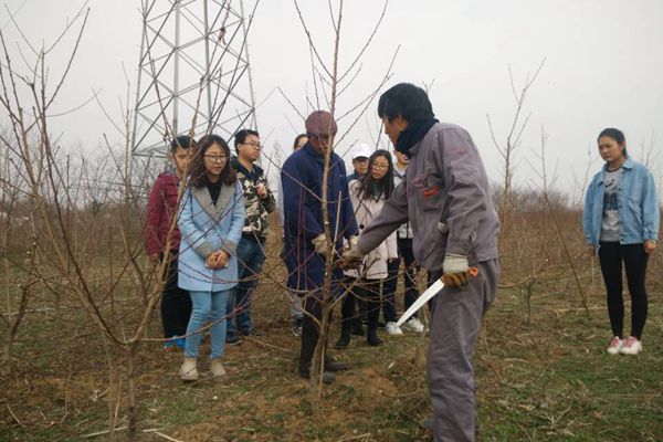4日清晨,田园使者们迎着朝阳来到合作社,却不想这果园里已有果农在工作了,他们正忙着修剪枝条。三月正是果树抽枝发芽的时节,为保证桃树的良好生长,不影响开花结果,必须将多余的枝条剪掉。这一过程便要求有一定的专业技术,由于同学们是初次来到果园帮忙,在修剪桃树方面没有经验,所以先开始做一些捡拾枝条的简单工作。工作过程中,队员们积极的与果农交流,向他们请教种植方面的经验,学习修剪桃枝的方法,渐渐掌握了一些技巧。开始在工作人员的指导下帮助修剪桃树,使得修剪工作快速有效的完成。在活动接近尾声的时候,果农们对田园使者的工作给予了充分的肯定,并表示感谢。